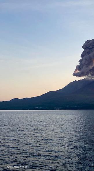 Kinkowan Bay is a bay created by large volcanic eruptions and tectonic movements. Although it is a far-inland bay, it has a maximum depth of 237 meters, and also features the Sakurajima volcano and ocean floor volcanoes which are active even now, and are amongst the handful of active volcanoes in the world.
